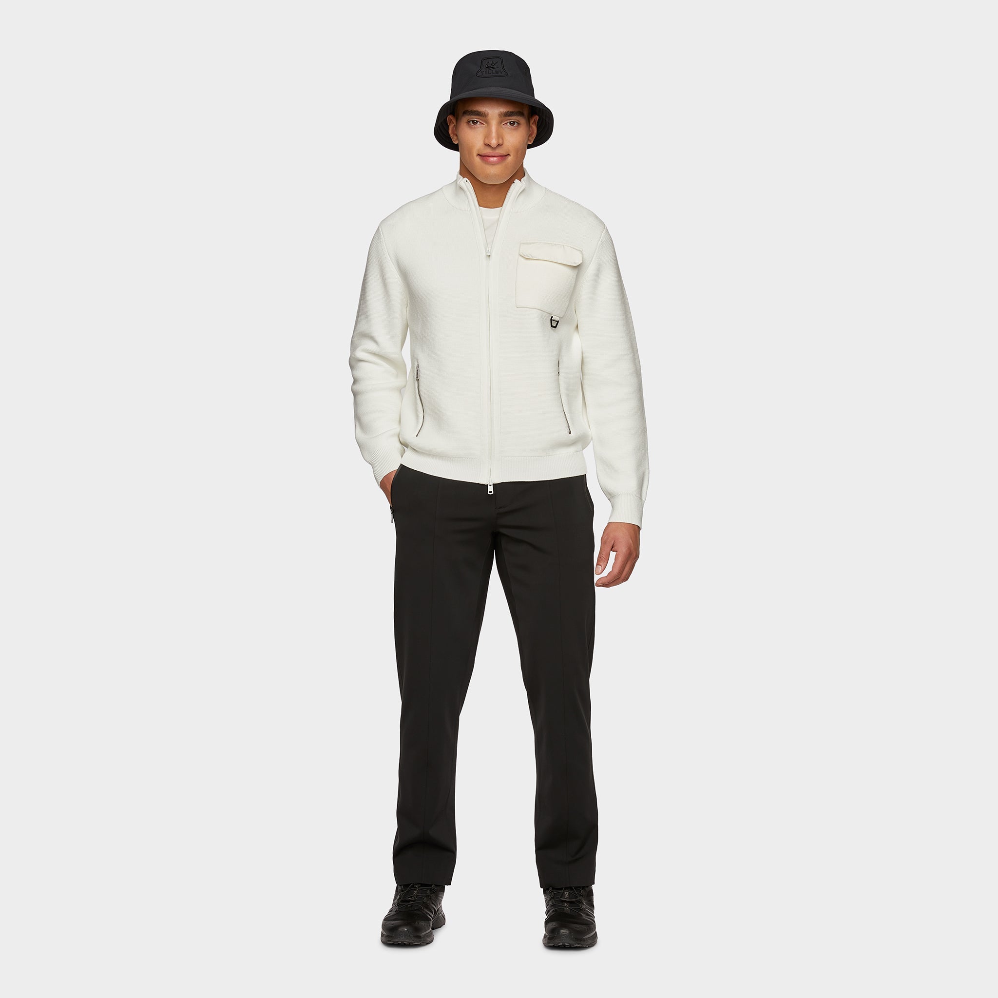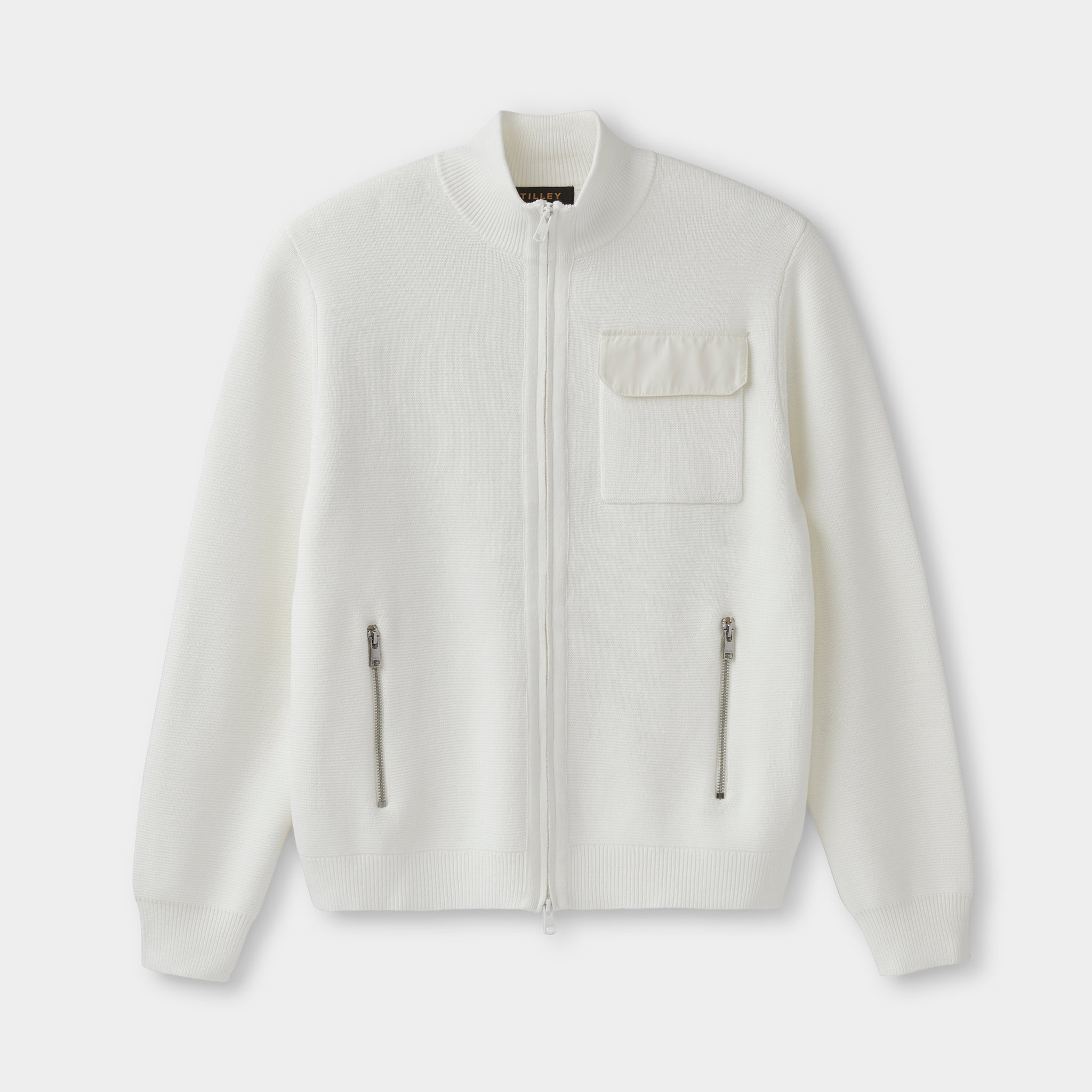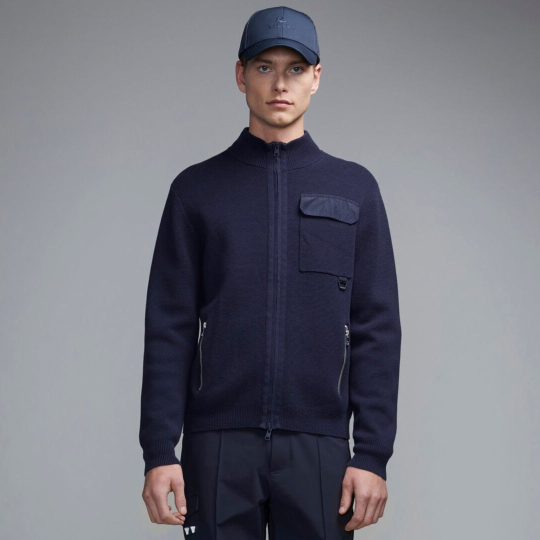 Crafted using a midweight, heat treated cotton yarn, this cardigan keeps you warm without overheating. Zippered pockets are included to keep your essentials safe, while shape retaining fabric prevents the sweater from stretching out with wash and wear.