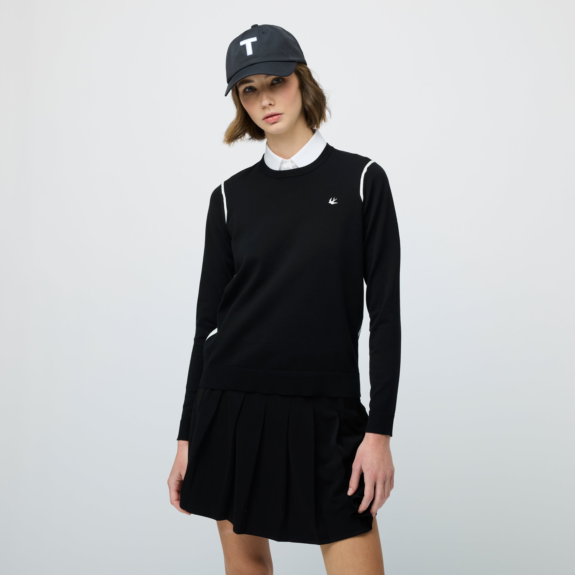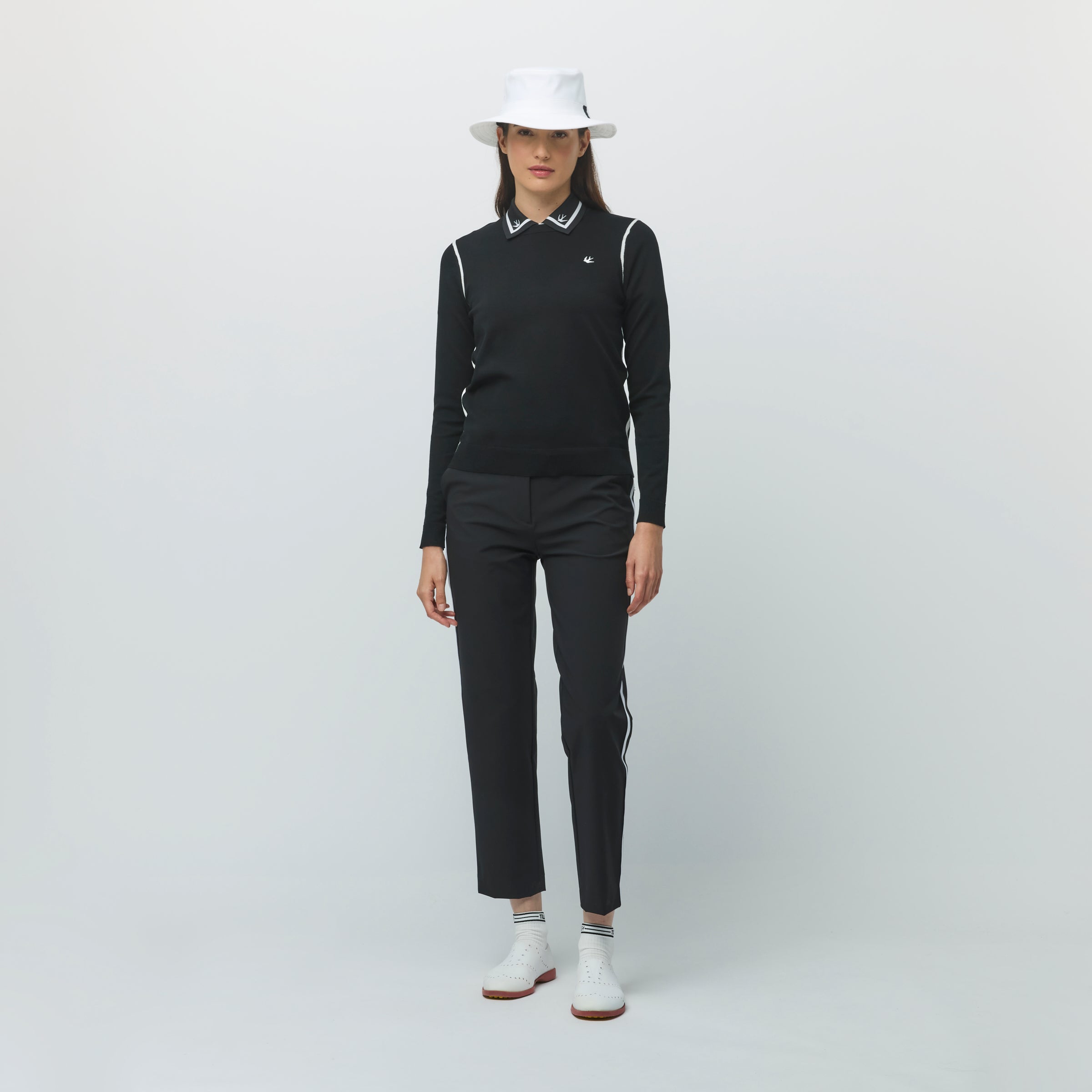 Made with heat treated performance cotton for improved moisture wicking and shape retention ability, finished with subtle accents including contrast piping down the side seams and embroidered swallow logo for total comfort and style.
